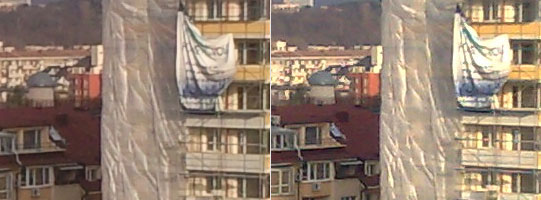 By the way, our first impressions were downright positive. In the photo quality department this fashion fella challenges the current champ Nokia N95 8GB. Here is a small teaser - 100% crops from the two cameras. Which one you like better? Can you guess which one is by Samsung U900 Soul and which one is by Nokia N95 8GB?